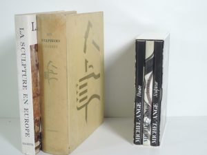 HANS KOE + OE, LA SCULPTURE EN EUROPE,HACHETTE 1964. LES SCULPTEURS CELEBRES, MAZENOD 1954. MICHEL ANGE, PEINTRE, ARCHITECTE, SCULPTEUR, textes de PIER LUIGI DE VECCHI, ALESSANDRO NOVA, VALZRIO GUAZZONI, trois vol richement illustrés.