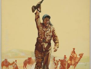 Couverture originale du roman de guerre de Philippe Casanova: " La Harka perdue - Sahara 1940 - Editions de l'Arabesque/Collection Baroud - 1966 - gouache couleur - signée par le peintre - 34,5 x 39,9 cm - sur carton fort. mentions au dos