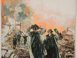 Couverture originale du roman de guerre de Jean-Michel Sorel: " Tornade sur Berlin " - Editions de l'Arabesque/Collection Baroud - 1965 - gouache couleur - signée par le peintre - 34,9 x 39,7 cm - sur carton fort. mentions au dos