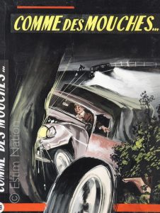 Couverture originale du roman d'espionnage de Robert Caine (Raymond Forestier) : "Comme des mouches..." - Editions de l'Arabesque - n° 129 - s.d.- gouache couleur - 29 x 39,8 cm - sur carton fort