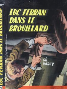 Couverture originale du roman d'espionnage de la série "Luc Ferran" de Gil DARCY (G. Arnaud) : "Luc Ferran dans le brouillard" - Editions de l'Arabesque - n° 171 - 2ème trim. 1961 - gouache couleur - signée par le peintre - 29 x 39,8 cm - sur carton fort - sans le logo collé