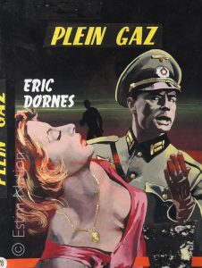 Couverture originale du roman d'espionnage de Eric Dornes (R.Bonnet): "Plein gaz" - Editions de l'Arabesque - n° 178 - 2ème trim. 1961 - gouache couleur - signée par le peintre - 29 x 39,8 cm - sur carton fort - sans le logo collé
