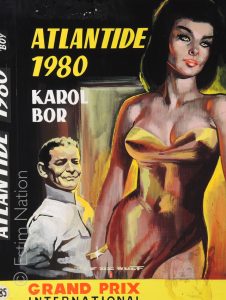 Couverture originale du roman d'espionnage de Karol Bor (Jean Buré): "Atlantide 1980" - a obtenu le Grand Prix international de Lugano en 1960 - Editions de l'Arabesque - n° 185 - 3ème trim. 1961 - gouache couleur - signée par le peintre - 29,5 x 39,9 cm - sur carton fort - sans le logo collé
