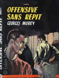 Couverture originale du roman d'espionnage de Georges Murey (G. Arnaud): "Offensive sans répit" - Editions de l'Arabesque - n° 187 - 3ème trim. 1961 - gouache couleur - signée par le peintre - 29,5 x 39,9 cm - sur carton fort - sans le logo collé