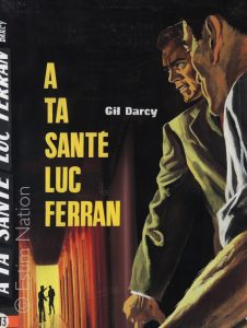 Couverture originale du roman d'espionnage de la série "Luc Ferran" de Gil DARCY (F. Lourbet) : "A ta santé Luc Ferran "- Editions de l'Arabesque - n° 213 - 1er trim. 1962 - gouache couleur - signée par le peintre - 29,5 x 39,8 cm - sur carton fort