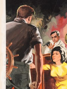 Couverture originale du roman d'espionnage de Karol Bor (J. Buré): "A nous deux toubib !" - Editions de l'Arabesque - n° 323 - 2ème trim. 1964 - gouache couleur - signée par le peintre - 29,5 x 41,3 cm - sur carton fort - tampon du studio de l'artiste au dos - pas de titre