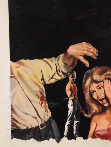 Couverture originale du roman d'espionnage de la série "Luc Ferran" de Gil DARCY (Buré) : "Luc Ferran s'accroche"- Editions de l'Arabesque - n° 400 - 3ème trim. 1965- gouache couleur - non signée par le peintre - 29,5 x 41,3 cm - sur carton fort - sans bandeaux - tampon du dessinateur au dos