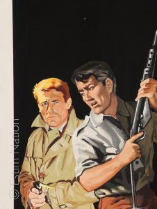 Couverture originale du roman d'espionnage de la série "Luc Ferran" de Gil DARCY (Arnaud) : "Luc Ferran - week-end au chateau"- Editions de l'Arabesque - n° 462 - 3ème trim. 1966 - gouache couleur - signée par le peintre - 29,5 x 41,3 cm - sur carton fort - sans bandeaux ni titres - tampon du dessinateur au dos
