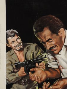 Couverture originale du roman d'espionnage de Jean Laune (Noble): "Commando pour l'enfer" - Editions de l'Arabesque - n° 466 - 4ème trim. 1966 - gouache couleur - signée par le peintre - 29,5 x 41,5 cm - sur carton fort - tampon du studio de l'artiste au dos - pas de titre