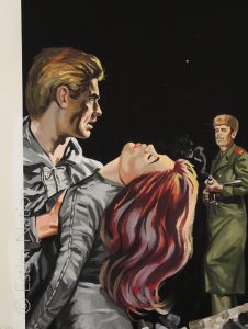 Couverture originale du roman d'espionnage de Karol Bor (Buré): "Le toubib met son grain de sel" - Editions de l'Arabesque - n° 474 - 4ème trim. 1966 - gouache couleur - signée par le peintre - 29,5 x 41,5 cm - sur carton fort - tampon du studio de l'artiste au dos - pas de titre