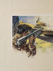Couverture originale du roman d'espionnage de Jean Laune (Noble): "bazooka D.G." - Editions de l'Arabesque - n° 482 - 1er trim. 1967 - gouache couleur - signée par le peintre - 36,6 x 50 cm - sur carton fort - tampon du studio de l'artiste au dos - pas de titre