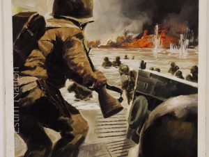 Série "BAROUD" - Couverture originale du roman de guerre de Valentin Saint-Vic (?) - "Rien que des morts - Pacifique 1942 " - Editions de l'Arabesque - n° 39 - 2ème trim.1969 - gouache couleur - non-signée par le peintre - 25 x 30,2 cm - collée sur carton fort.