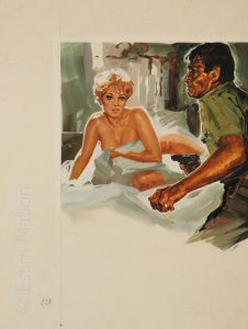 Couverture originale du roman d'espionnage de Slim Harrisson ( Dubessy) : "okay ! mignonne"- Editions de l'Arabesque - n° 528 - 2ème trim. 1968 - gouache couleur - non-signée par le peintre - 32,3 x 41,7 cm - sur carton fort, sans titres