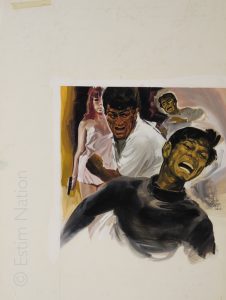 Couverture originale du roman d'espionnage de H.T. Perkins (Trémésaigues): "baron voit double"- Editions de l'Arabesque - n° 536 - 3ème trim. 1968 - gouache couleur - non-signée par le peintre - 32,5 x 49,7 cm - sur carton fort, sans titres