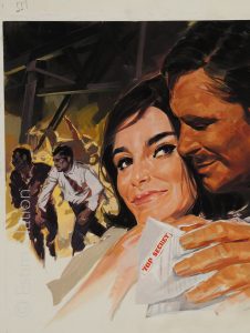 Couverture originale du roman d'espionnage de Jacky Fray (Maury): "un espion très malin"- Editions de l'Arabesque - n° 551 - 4ème trim. 1968 - gouache couleur - non-signée par le peintre - 25,3 x 34,3 cm - sur carton fort, sans titres
