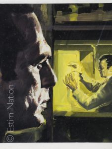 Couverture originale du roman d'espionnage de Jean Laune (Noble) : "bonne chance mister Chang"- Editions de l'Arabesque - n° 569 - 1er trim. 1969 - gouache couleur - non-signée par le peintre - 24,3 x 32,4 cm - sur carton fort, sans titres