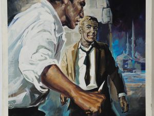 Couverture originale du roman d'espionnage de Gil Darcy (Roger Vilatimo) : "Luc Ferran ouvre le feu "- Editions de l'Arabesque - n° 575 - 2ème trim. 1969 - gouache couleur - non-signée par le peintre - 25 x 29,2 cm - sur carton fort, sans titres