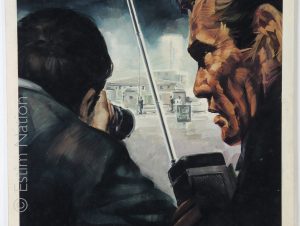 Couverture originale du roman d'espionnage de Jacky Fray (Maury) : "Dangereuse tactique"- Editions de l'Arabesque - n° 586 - 2ème trim. 1969 - Prix Cicéron - gouache couleur - non-signée par le peintre - 25 x 29,9 cm - sur carton fort, sans titres - image inversée sur la couverture de l'édition du roman