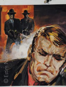Couverture originale du roman d'espionnage de Slim Harrisson ( Dubessy) : Ca pardonne pas, petit"- Editions de l'Arabesque - n° 600 - 4ème trim. 1968 - gouache couleur - non-signée par le peintre - 24,8 x 32,2 cm - sur carton fort, sans titres