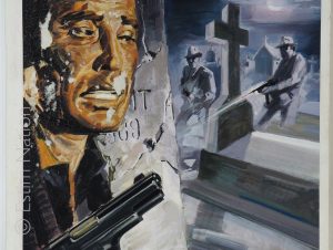 Couverture originale du roman d'espionnage de Dominique de Niort: " Services funèbres "- Editions de l'Arabesque - n° 604 - 4ème trim. 1969 - gouache couleur - non-signée par le peintre - 25 x 29,2 cm - sur carton fort, sans titres