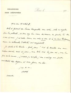 Maurice BARRÈS LAS, Samedi [1925], à Henry de Montherlant ; 1 page in-4 à en-tête Chambre des Députés « Dites à Grasset de laisser tranquille mon vote cela ne regarde pas la publicité, et vous avez bien raison de réserver ces questions-là...