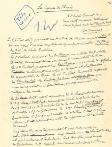 [Charles BAUDELAIRE] Fernand VANDÉREM (1864-1939) Manuscrit autographe signé, Les Caprices de Thémis, [25 décembre 1925] ; 5 pages in-8 (3 découpées pour impression et remontées) Intéressant article sur Les Fleur du Mal et la Justice, publié...