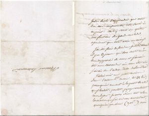 1er août [1838] Il demande s’il est vrai que la police a fait une descente chez Lamennais Lui-même est fort heureux : « Vous ne vous figurez pas combien de témoignages d’amitié j’ai reçus depuis 3 mois M de Chateaubriand, qui va quitter sa maison de la rue d’Enfer, ne voulait-il pas m’aider à rester dans la retraite à laquelle j’ai été obligé de renoncer, toute modeste qu’elle été J’ai été bien touché de cette marque d’intérêt de sa part »…