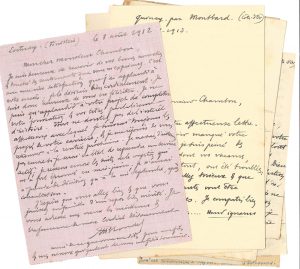 - 30 septembre 1922. Souhaits de bienvenue à ses nouvelles fonctions de professeur de littérature à l’école régionale de Vierzon... Aix 11 décembre 1922. Vœux après sa nomination aux Arts et Métiers de Cluny. « Je suis remplacé pour l’année à la Faculté par M. Goblot (de Lyon) qui fait des conférences de 2 h½. J’admire ce zèle »...
