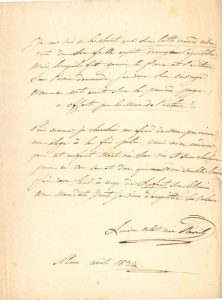 Louise COLET Poème autographe signé, Portrait, Nîmes août 1834 ; 3 pages in-4 (un bord un peu effrangé). Pièce de 7 strophes, raillant un mauvais auteur dans le milieu corrompu de l’édition. ...