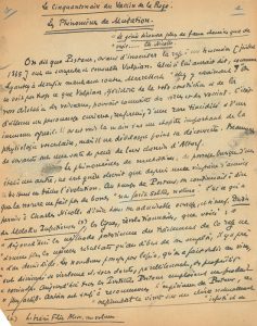 Léon DAUDET (1868-1942). Manuscrit autographe signé, Le Cinquantenaire du Vaccin de la Rage. Les Phénomènes de Mutation ; 2 pages et demie in-4. « On dit que Pasteur, avant d’inoculer la rage à un humain [juillet 1835] eut un scrupule et...