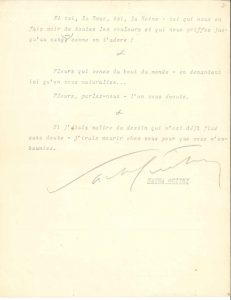 Sacha GUITRY (1885-1957). Tapuscrit avec signature et signes autographes, Grasse ; 2 pages et demie in-4. Bel hommage à Grasse, ses fleurs et ses parfums. « Oh ! Pourquoi Grasse – et non pas : Grâce ? […] Grasse, vous êtes la patrie...
