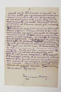Myriam HARRY (1875-1958) romancière et voyageuse. Manuscrit autographe signé, En Terre d’Adonie, L’Île de Rouad, [1930] ; 10 pages in-fol. à l’encre violette avec ratures et corrections (un coin déchiré au 1er feuillet sans toucher le...