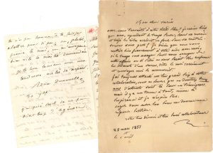 au début, les 6e et 7e ont été bien, « et Dormeuil s’en est tenu là. Que faut-il dire ou faire ? Dites le moi ; je crois qu’un mot de vous à Dormeuil aurait seul le pouvoir de nous faire jouer encore qques fois comme lever de rideau »... Il compte sur la continuation de leur collaboration et le prie de lui envoyer « la moitié demandée »... On joint une L.A. (minute) d’Eugène Labiche à Charles Varin, 28 mars (et 61851 (1 page in-4), lui demandant s’il a travaillé à leur pièce : « J’ai toujours attaché un très grand prix à votre collaboration, vous ne pouvez pas en douter, deux ans d’attente sont là pour en témoigner, mais il y a un terme à tout, même à l’espérance et je n’espère plus »...