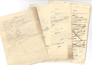 Labiche et Auguste Lefranc (1814-1878), créé aux Folies-Dramatiques le 18 mai 1847, avec notamment Mme Duvernoy dans le rôle de la lorette Isoline, et Ferdinand Heuzey dans celui de Guenuchaud, administrateur du chemin de fer d’Orléans, « sous le nom de Floridor » ; publié chez Beck [OC, t I, p. 287]. Amusant vaudeville mettant en scène des lorettes, une habile solliciteuse, la marchande à la toilette Mme Malabar, la grisette Passe-Lacet, l’épileuse Coralie, et quelques « jobards » bernés au profit d’un jeune et charmant provincial, Colombin. Manuscrit de travail, abondamment raturé et corrigé, le début entièrement de la main d’Auguste Lefranc, pour les sept premières scènes (pages 1-43, plus la liste des personnages en tête, sur des feuillets petit in-4) ; la fin est en très grande partie de la main de Labiche, sur de grands feuillets, avec de nombreuses ratures et corrections : Labiche a rédigé les scènes 8, 9 et 10 (pages 44-51), la scène 11 reprend le manuscrit de Lefranc (pages 52-59), et Labiche reprend la plume pour les dernières scènes (scènes 12 à 17, pages 60-77). Cette première version est très différente du texte final, et fait notamment intervenir une chanteuse des rues, la Cigale, et des bohémiennes qui disparaîtront dans la version définitive.