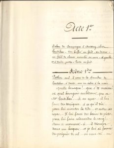 au théâtre du Palais-Royal le 21 août 1866, avec, dans les principaux rôles, Lhéritier (Gaudiband) et Geoffroy (Gatinais) ; publiée par Dentu, elle fut recueillie en 1878 dans le Théâtre complet [OC, t. VII, p. 108]. Gatinais, voulant aider son ami Gaudiband en guerre avec son voisin Blancafort, tire sur un chat miauleur, et Gaudiband se retrouve accusé de tentative de meurtre ; Gatinais est nommé juré au procès… Manuscrit de copiste d’une première version, très différente du texte définitif ; les noms des personnages seront légèrement modifiés : le domestique Potheu deviendra Poteu, Gaudiban sera Gaudiband, Oscar Merveillon (neveu de Gaudiband) Edgard Vermillon, l’avocat Bavey Bavay. Notes au crayon de Labiche pour son collaborateur, en marge de la 2e scène de l’acte II : « on fera sortir les femmes mais je te la raconterai » ; et à la scène 14 : « Merveillon offre le bouquet à Julie – C’est drôle il y avait deux camélias au milieu qu’est-ce qu’ils sont devenus ? » ; dans la scène 7 de l’acte III, il ajoute dans l’interligne, lors de la lecture de la lettre d’Arthémise par Gaudiban : « il avait besoin de soins » ; dans la scène 8, il ajoute en marge une réplique de Gaudiban : « C’est un esprit de moyenne communication » ; et scène 9, il corrige une réplique de Gaudiban : « C’est-à-dire… il l’a été mais il ne l’est plus ». On joint une L.A. (minute inachevée), Souvigny 5 juillet 1865, à son avocat (4 pages et demie petit in-4). Il s’est « rompu un muscle de la jambe en sautant un de nos grands fossés de Sologne »… Il revient sur la condamnation, deux ans plus tôt, de Péragallo, agent général de la Société des Auteurs dramatiques, à qui il avait envoyé alors une lettre de soutien ; il ignorait alors « qu’une somme de 42 mille francs, je crois, due aux auteurs restait impayée depuis plusieurs années »…