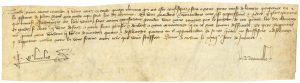 CHARLES VI (1368-1422) Roi de France. L.S. « Charles », Melun 26 janvier [vers 1390 ?], à un Bailli ; contresignée par REAUVILLE ; vélin oblong in-8 (7 x 26 cm.).