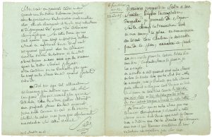 Dernieres propositions faites a ma famille, d’après l’acceptation desquelles je promets de signer sur le champ la transaction dont on ma envoye le plan… Il accepte, « pour la cession totale de mon bien » les cinq mille francs de pension pour lui et une rente de vingt mille francs à Mme QUESNET, au lieu des trente-cinq qui lui sont dus, avec un intérêt à cinq pour cent ; il consent à n’avoir que neuf mille francs pour ses « créanciers chirographiques » au lieu des quinze mille demandés. Il paiera M. de COULMIERS sur ses revenus fermiers. Il se réserve « le château de Saumane et ses dépendances, m’engageant à ne le jamais vendre, mais desirant que Md Quesnet puisse y finir ses jours si elle le veut ». Il se réserve aussi « de disposer a ma mort de 800 f de rente en faveur de l’individu quelconque qui soignera mes derniers instans ».