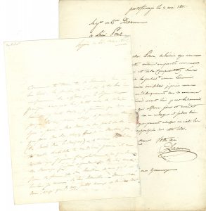 Charles Lefebvre Desnouettes (copie d’époque d’une réplique du général Palafox, général en chef de l’armée d’Aragon, à sa sommation de poser les armes, Albarracin 1808), Jean-Marie-Pierre-François Lepaige DORSENNE (certificat, 1800),