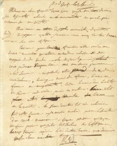 « Madame et chere femme. Depuis 4 jours que je suis loin de vous j’ai toujours été à cheval et en mouvements sans que cela prit nullement sur ma senté.