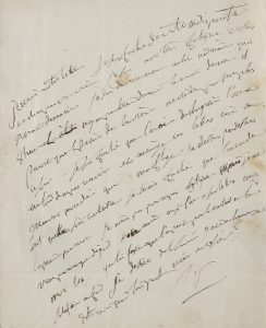« Je reçois votre lettre. Je suis faché de votre indisposition et de ne pas vous voir. Je suis aussi bien fatigué. Je vous verrai demain. Je suis dans ce moment au lit ne dinant qu’à 8 heures et n’ayant pas bien dormi la nuit dernière. Il paroit que la Reine de Bavière ne viendra pas non plus ce soir. Je suis faché que l’on ait du chagrin l’on a eu tort de ne pas recevoir et m’envoyer ces lettres. C’est un mauvais procédé qui m’afflige. Je désire pardessus tout qu’elle soit contente. Je serais faché que l’on eut de l’aigreur pour moi. Je n’irai pas pour ne pas fatiguer. Mais je ne veux pas manquer d’ignorer si on avoit ou si l’on a ses lettres. Envoyez moi les. Que l’on fasse ce que l’on peut pour la contenter et la satisfaire au fond. Je désire de la savoir gaie et heureuse. Dites-moi quand l’on peut venir ou ce soir ? »… Correspondance générale, t. IX, n° 22993.