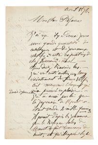 Lettre autographe signée à Camille Pissarro relative à l'Exposition de ses oeuvres à la galerie Durand-Ruel à Paris :
