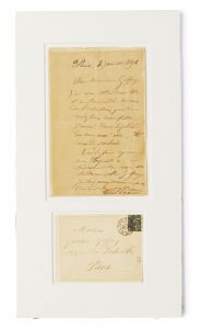 PAUL CÉZANNE (1839-1906). Lettre autographe signée à Gustave Geoffroy. Paris, 2 janvier 1895. 1 p. sur 1 f. in-8 (21 x 13,4 cm) montée sous passe-partout, enveloppe autographe.