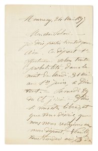 PAUL CÉZANNE (1839-1904). Lettre autographe signée à Emile Solari. Mennecy, 24 mai 1897. 2 p. sur 1 double f. in-8 (20,7 x 13 cm).