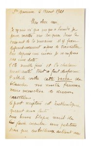 Lettre autographe signée à André Salmon à propos d'un article de Derain sur le peintre Jacques-Émile Blanche « Hommage à Jacques-Émile Blanche peintre splendide et critique admirable », paru dans la revue Signaux de France et de Belgique en septembre 1921.