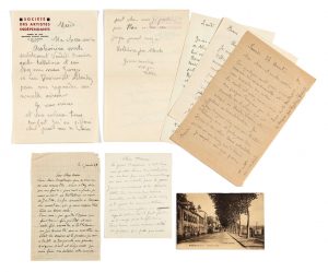 Réunion de 15 lettres autographes signées dont 1 ornée d'un dessin à l'encre, 3 cartes autographes signées et 21 enveloppes autographes à Charles Thorndike, Henri Donias et leurs épouses.