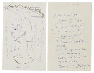 Importante correspondance, comprenant des plans, dessins et croquis originaux, de Jean Cocteau à Jean Triquenot, architecte décorateur cannois avec lequel Cocteau s'associa pour ses projets architecturaux.