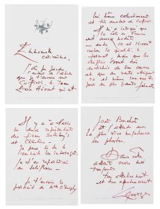 - 22 enveloppes autographes, un prospectus pour une Exposition de Mathieu, 3 articles de journaux dont 1 comportant une annotation autographe, 1 photocopie avec annotation autographe et signature et une carte postale vierge.