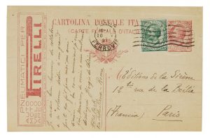 Carte postale autographe signée adressée aux Éditions de la Sirène en réponse à une demande, émanant probablement de son fondateur Paul Laffite, de poème et de dessin pour l'édition d'un ouvrage en hommage à Guillaume Apollinaire.