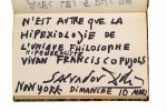 DALI SALVADOR (1904-1989). MANUSCRIT autographe signé «Salvador Dali», [Moïse et le monothéisme], «New York dimanche 10 mars 1971» ; 20 pages in-8 (13 x 21 cm) d'un carnet in-8 (le reste blanc), cartonnage recouvert de velours à motif...