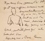 Jolie lettre du Degas poète, illustrée d'un dessin à la plume.